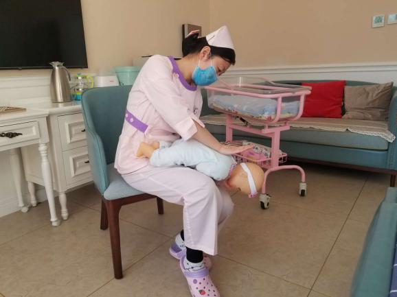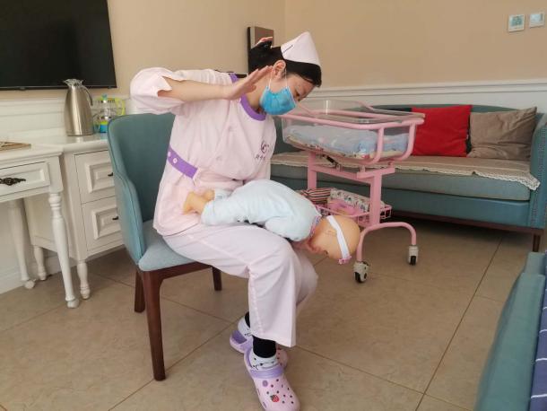 操作方法:立即將患兒取頭低腳高位,俯臥在施救者腿上,讓嬰兒上身前傾45~60度,施救者左手虎口打開(kāi)、托住嬰兒下頜、打開(kāi)氣道,用右手掌跟大魚(yú)際部位用力扣拍嬰兒背部4—5次,具體位置為背部肩胛骨中間,通過(guò)振動(dòng)使吸入呼吸道的奶汁或痰液排出。